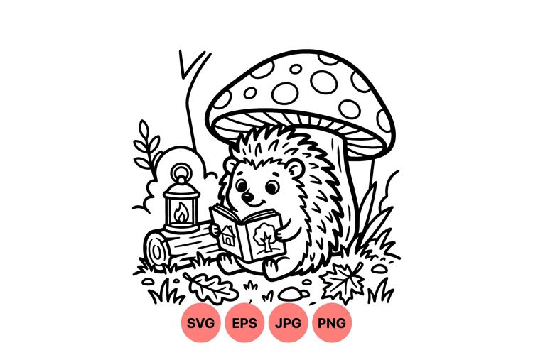 Cute Hedgehog Reading in Forest Illustration example image 1