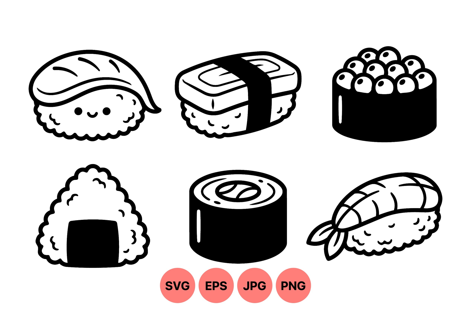 Hand Drawn Vector Cute Sushi Clipart Japanese Food Art Food Vector Illustration Black White Sushi Kawaii Food Graphics Nigiri Sushi Design Maki Roll Illustration Onigiri Rice Icon Cartoon Sushi Image