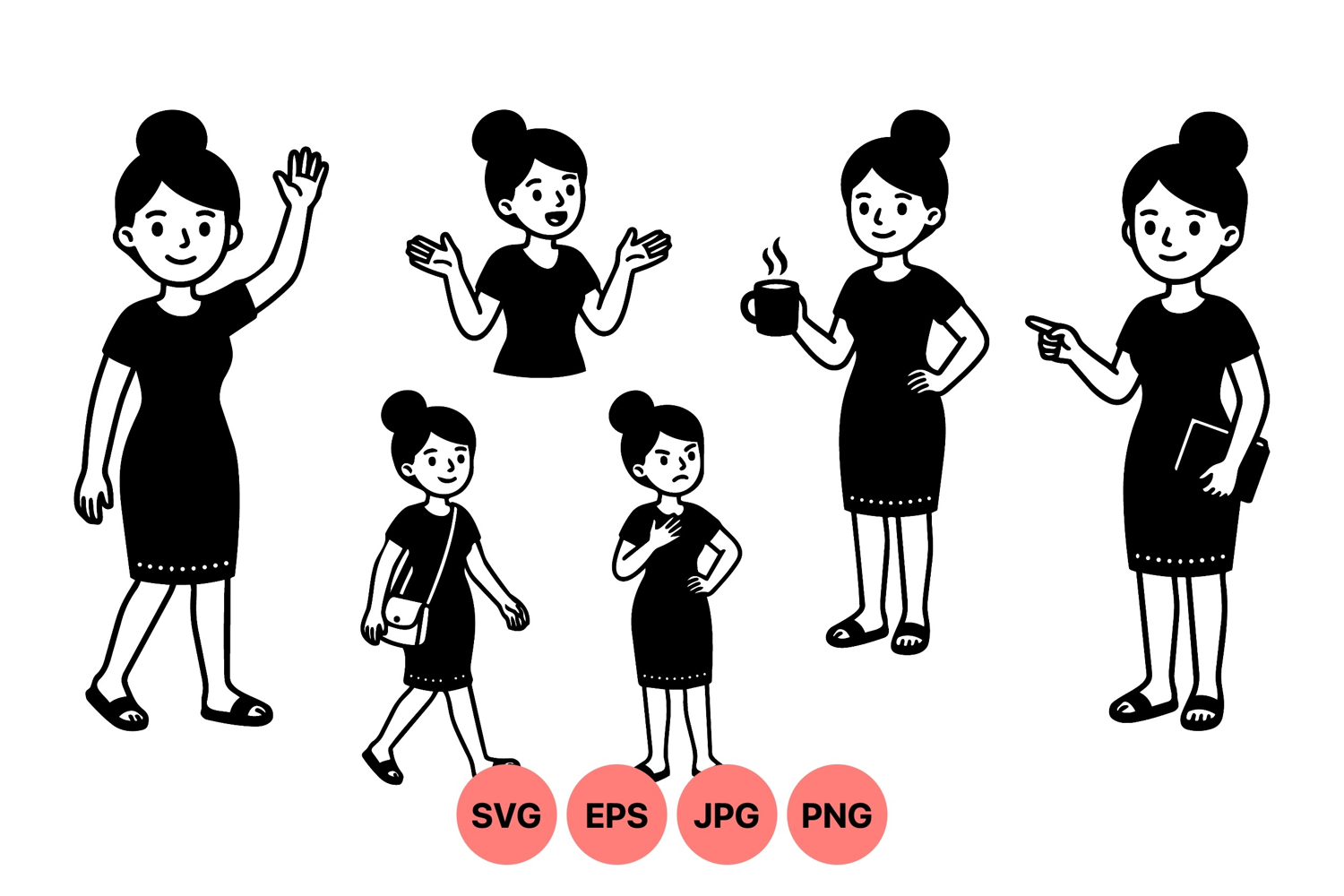 Similar Design Products to Black And White Woman Character Illustration SVG