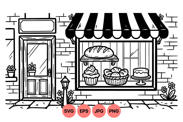 Similar Design Products to Hand Drawn Bakery Shopfront Line Art Illustration
