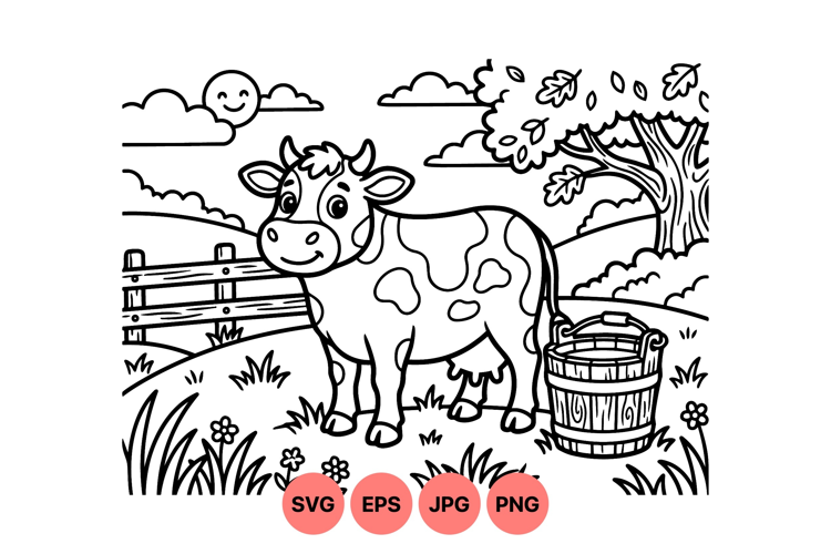 Farm Cow Coloring Page Outline Vector Design example image 1