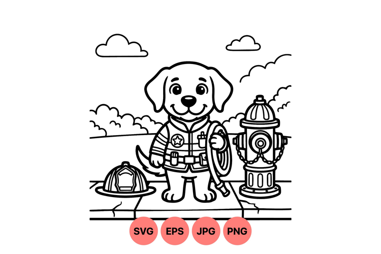 Cute Firefighter Dog Clipart For Kids Coloring example image 1