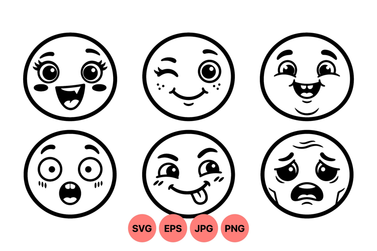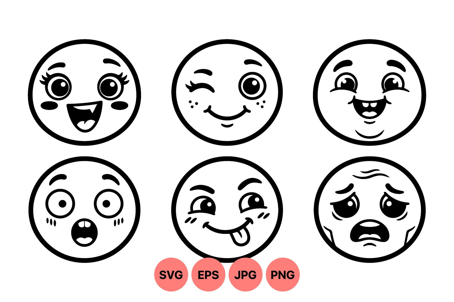 Cute Emoji Faces Comic Style Faces Expressive Smiley Icons Black White Emoticons Fun Cartoon Expressions Vector Emoji Graphics Playful Face Illustrations Digital Smiley Drawings Outline Emoji Designs Circle Emoticon Art