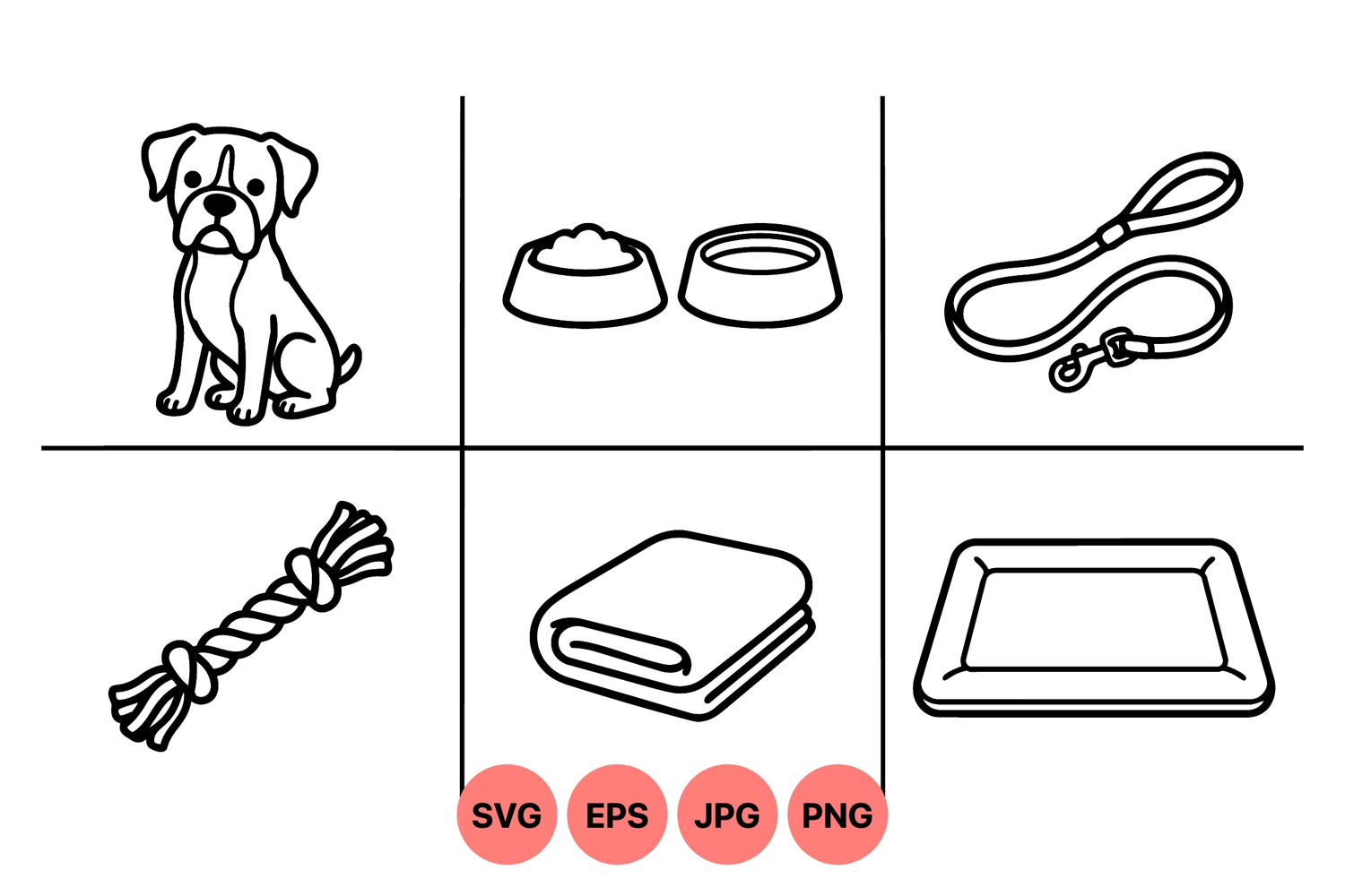 Hand Drawn Dog Puppy Vector Graphics Pet Accessories Illustration Animal Outline Art Dog Leash Illustration Puppy Care Clipart Pet Toy Graphics Dog Bed Drawing Pet Feeding Clipart Dog Blanket Design