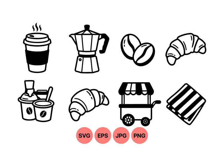 Takeaway Coffee Svg Coffee Cup Icon Black White Icons Coffee Shop Artwork Breakfast Food Icons Croissant Svg Design Espresso Pot Illustration Coffee Beans Graphic Bakery Snack Graphics Food And Drink Design