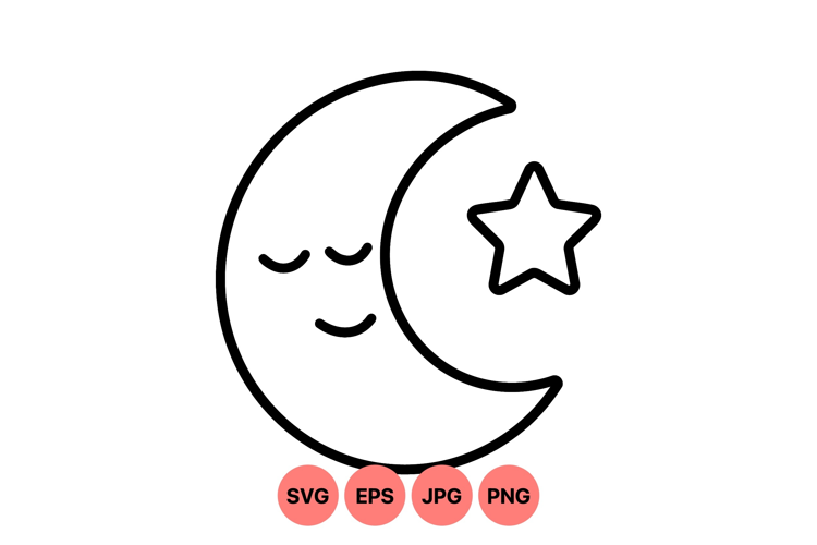 Minimal Sleeping Moon And Star Line Art Svg example image 1