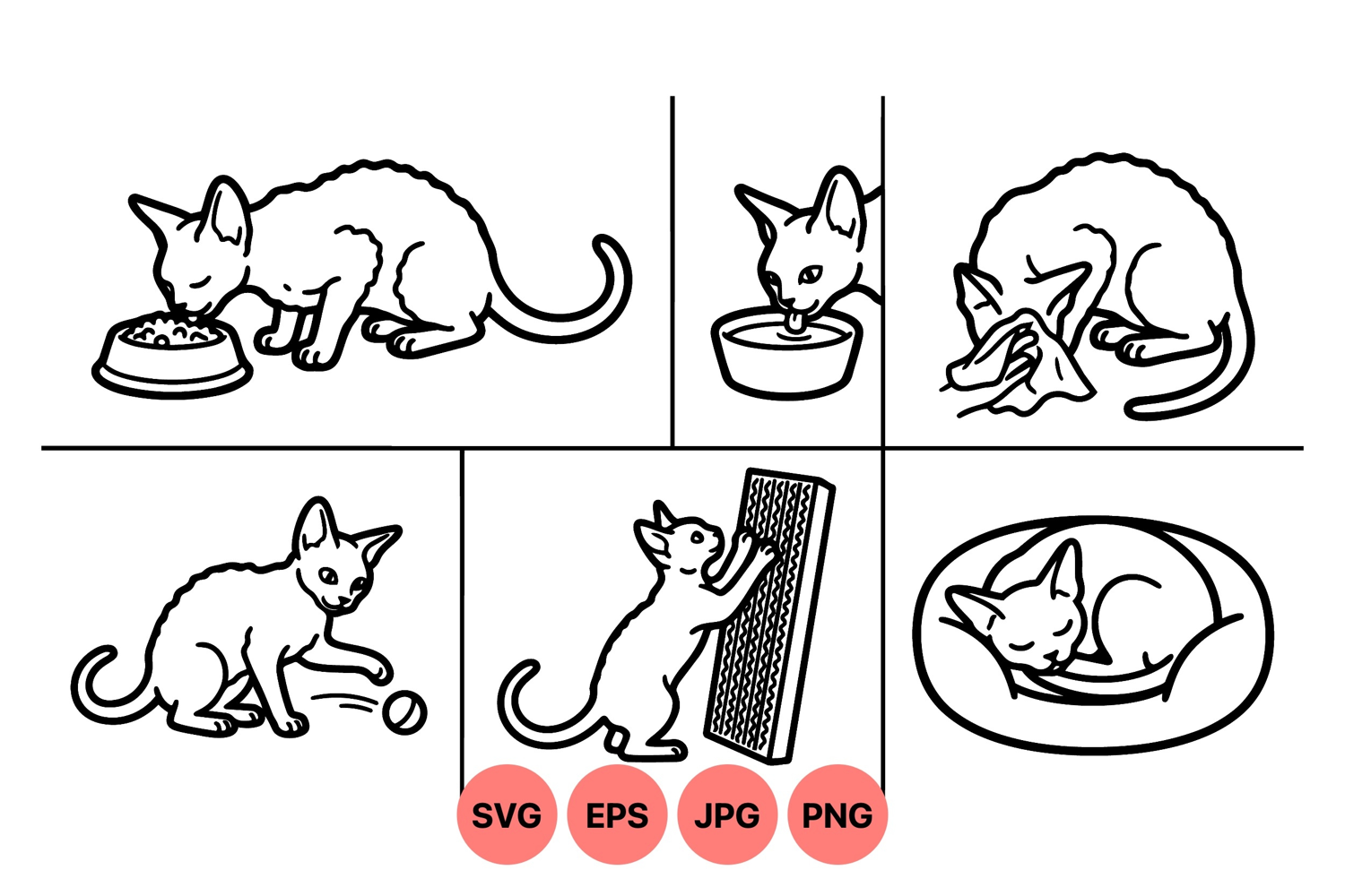Cute Cat Clipart Line Art Cat Animal Line Drawing Cat Sleeping Drawing Cat Playing Illustration Kitten Eating Food Pet Scratching Post Cat Drinking Water Cat With Toy Cat Resting Graphic