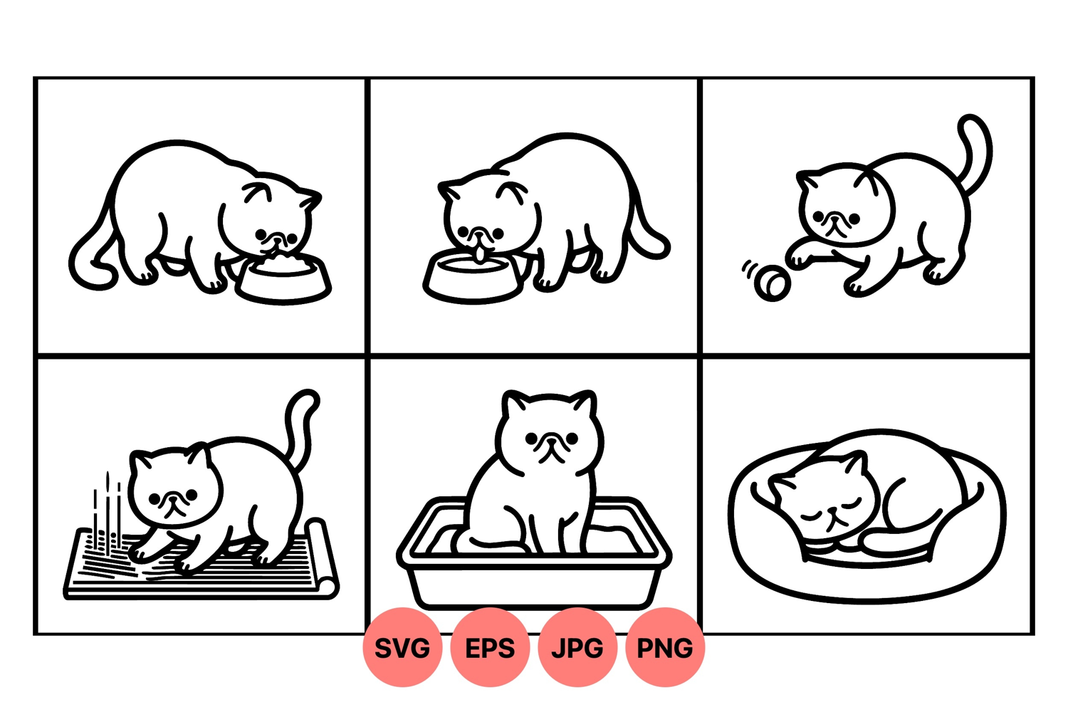 Cat Line Art Playful Cat Illustration Pet Care Graphics Kitten Clipart Design Cat Sleeping Drawing Cat Eating Clipart Simple Cat Outline Cat Toy Vector Indoor Cat Drawing Cat Scratching Mat