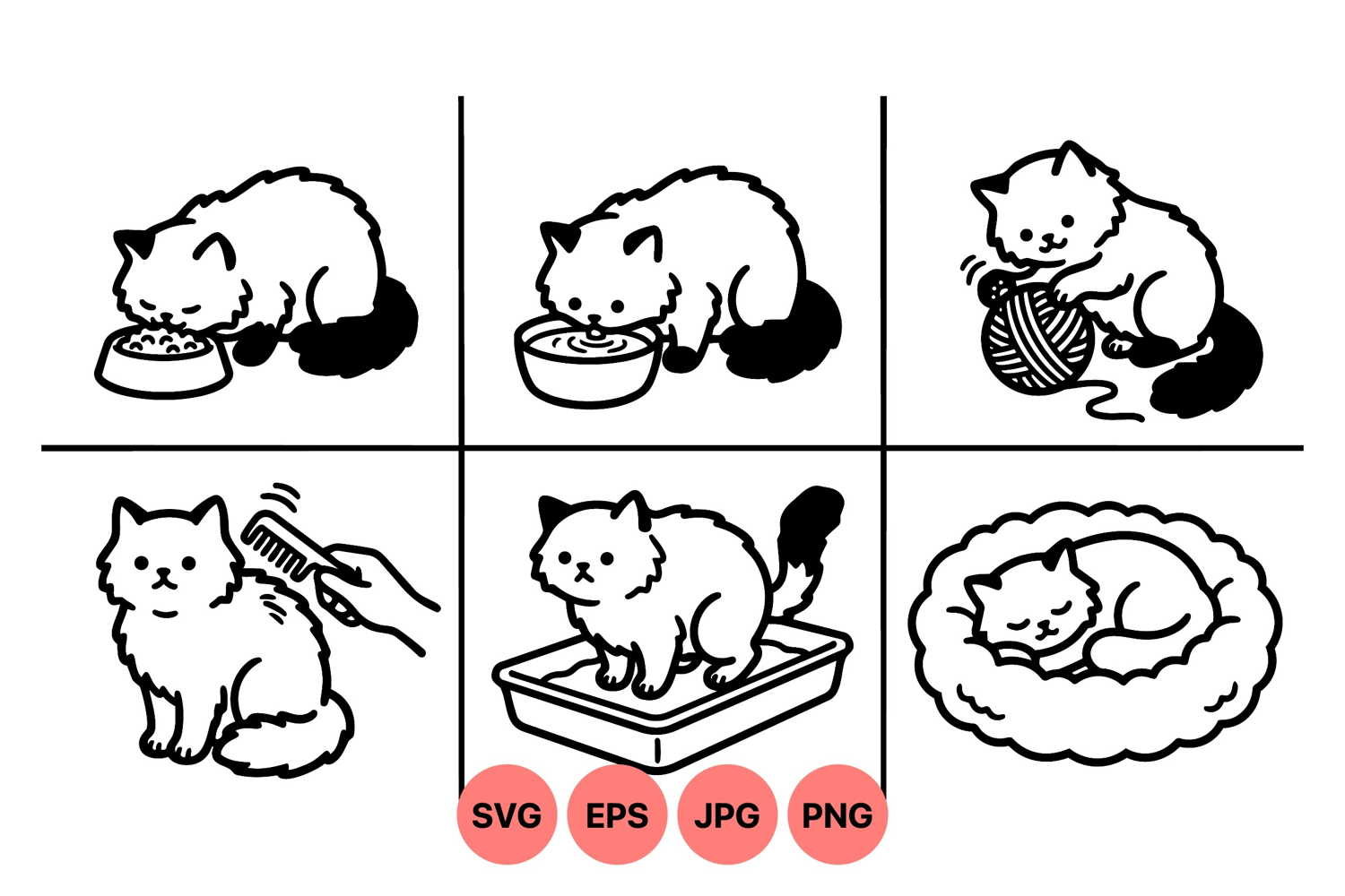 Cute Kitten Clipart Sleeping Cat Drawing Pet Care Graphics Cat Grooming Illustration Line Art Cat Design Pet Feeding Clipart Cat Daily Activities Kitten Playing Yarn Cat Litter Box Art Adorable Cat Vector