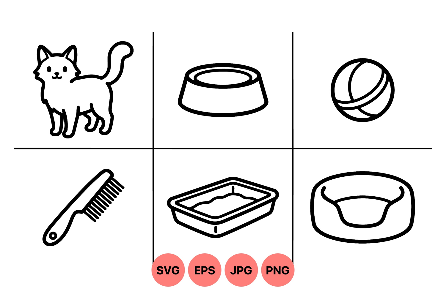 Line Art Cat Cat Food Bowl Cat Grooming Clipart Animal Care Graphics Pet Bed Drawing Cat Care Icons Pet Accessories Design Minimal Cat Illustration Cat Toy Images Litter Box Icon