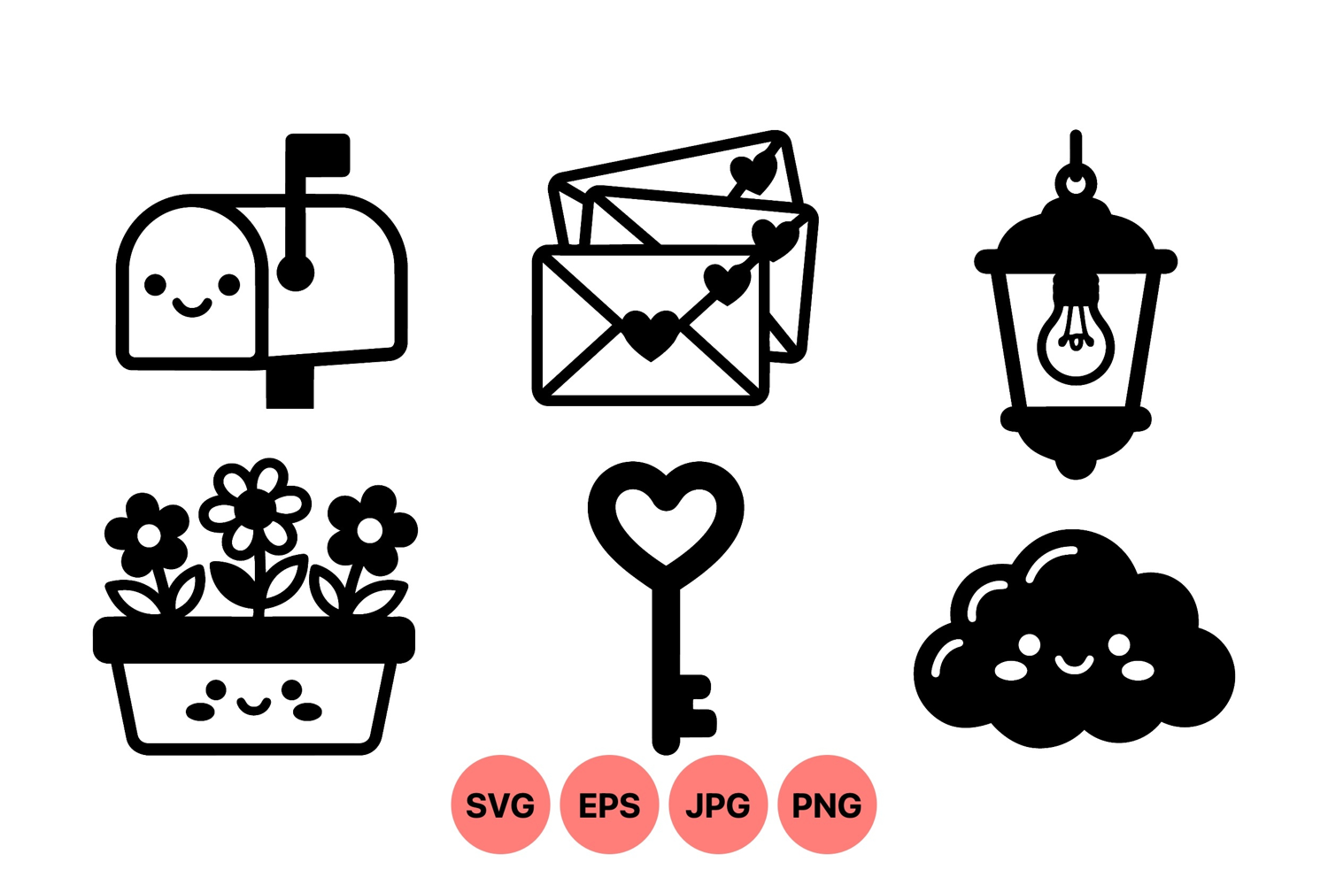 Cute Love Clipart Romantic Letter Design Heart Key Illustration Flower Pot Graphic Mailbox Vector Art Smiling Cloud Icon Simple Lamp Drawing Happy Face Element Whimsical Mail Icons