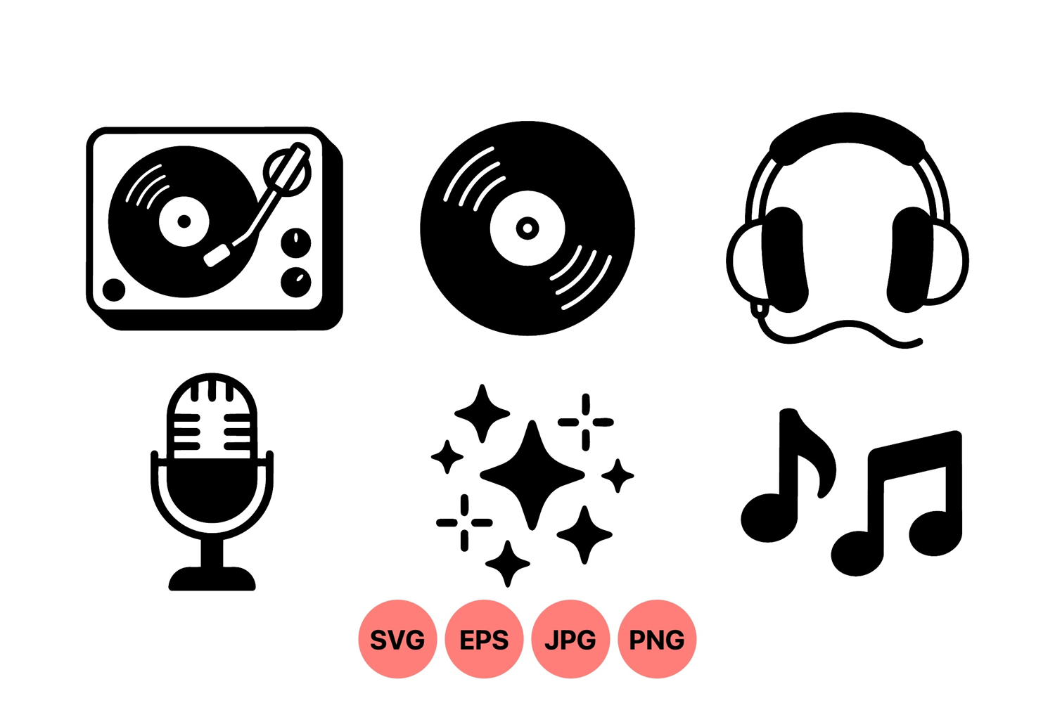 Musical Notes Clipart Microphone Illustration Sound Wave Illustration Vinyl Record Vector Digital Music Icons Music Icon Clipart Retro Audio Design Headphones Graphics Dj Turntable Art Party Music Symbols