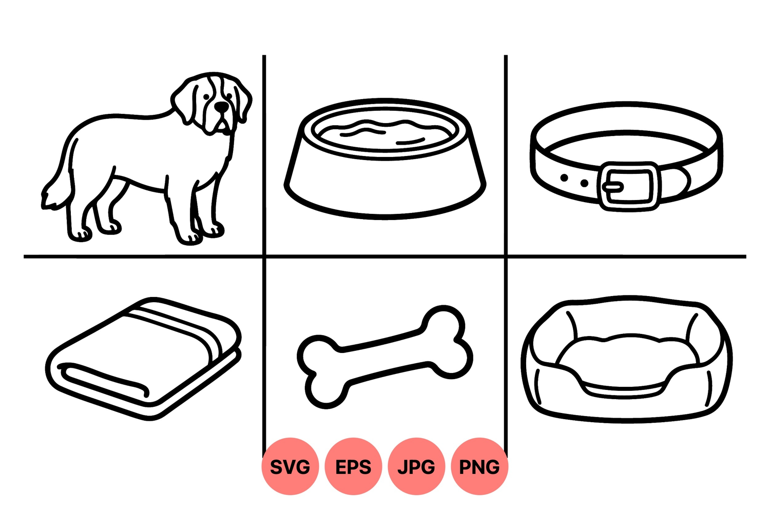 Dog Bone Illustration Dog Care Clipart Line Art Pet Design Pet Accessories Graphics Animal Bed Artwork Dog Collar Graphic Pet Feeding Bowl Blanket Line Drawing Canine Outline Art Animal Comfort Design