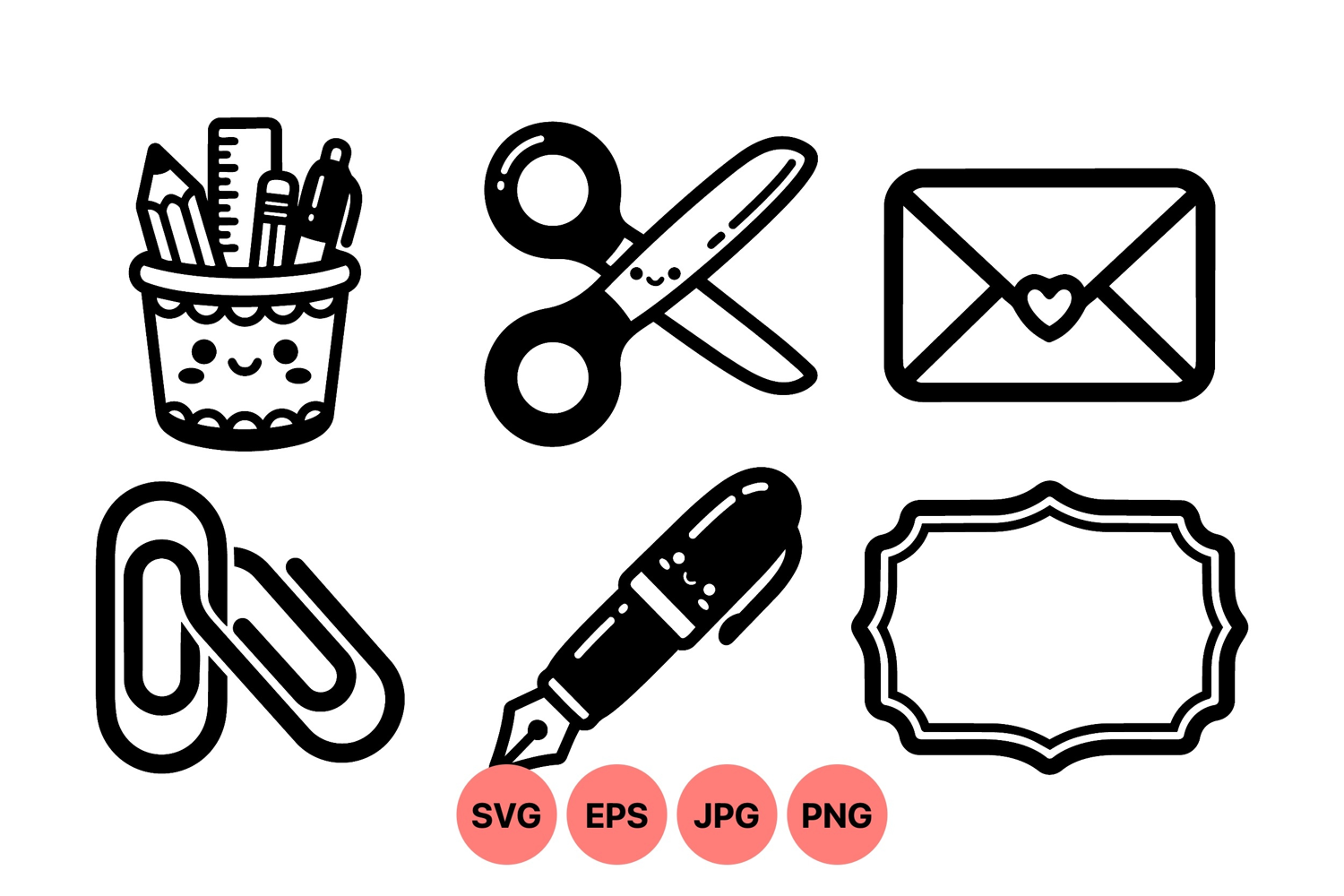 Cute Black And White Office Supplies Clipart Illustration example image 1
