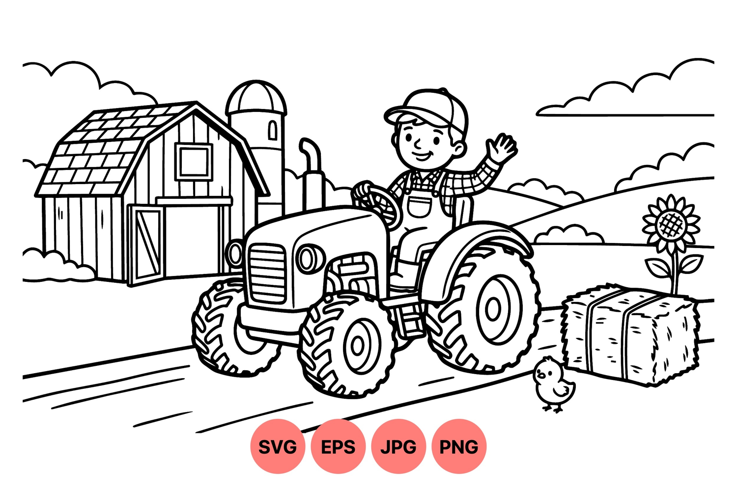 Farm Tractor Design Agriculture Clipart Sunflower Vector Art Hay Bale Illustration Boy Riding Tractor Tractor Coloring Clipart Barn And Farm Child Outdoors Svg Cute Farm Scene Tractor Line Drawing