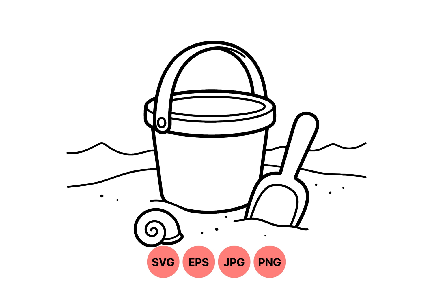 Black Line Art Beach Bucket With Shovel Illustration example image 1