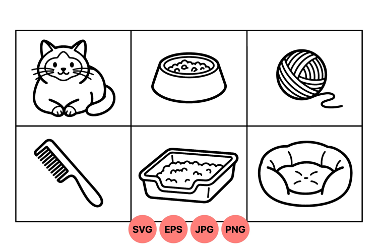 Similar Design Products to Line Art Cat Essentials Clipart For Crafts