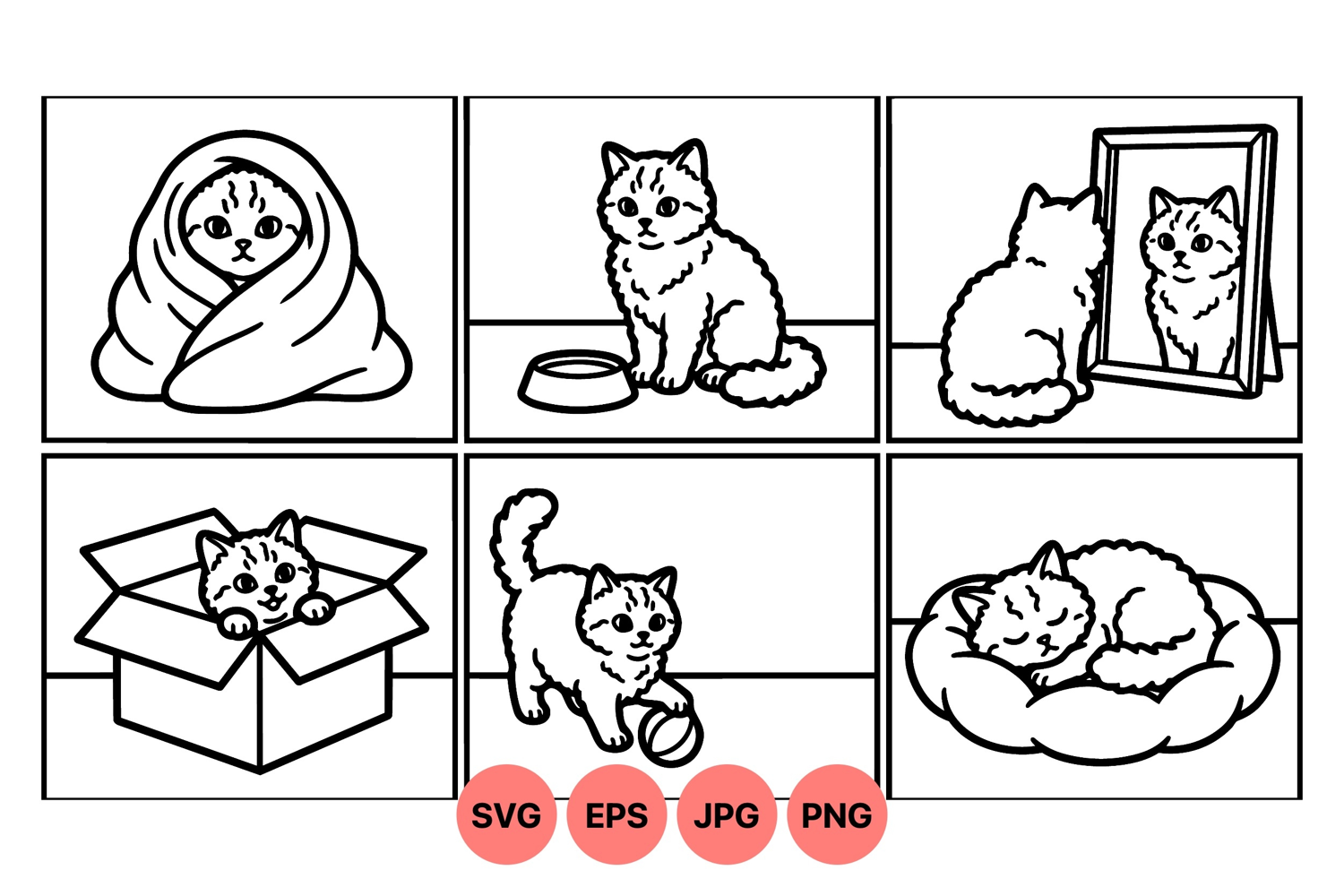Cat Vector Clipart Digital Cat Artwork Playful Cat Design Cute Pet Illustration Sleeping Kitten Art Kitten Line Art Animal Outline Graphic Cat In Box Drawing Minimalist Cat Clipart Black And White Kitten