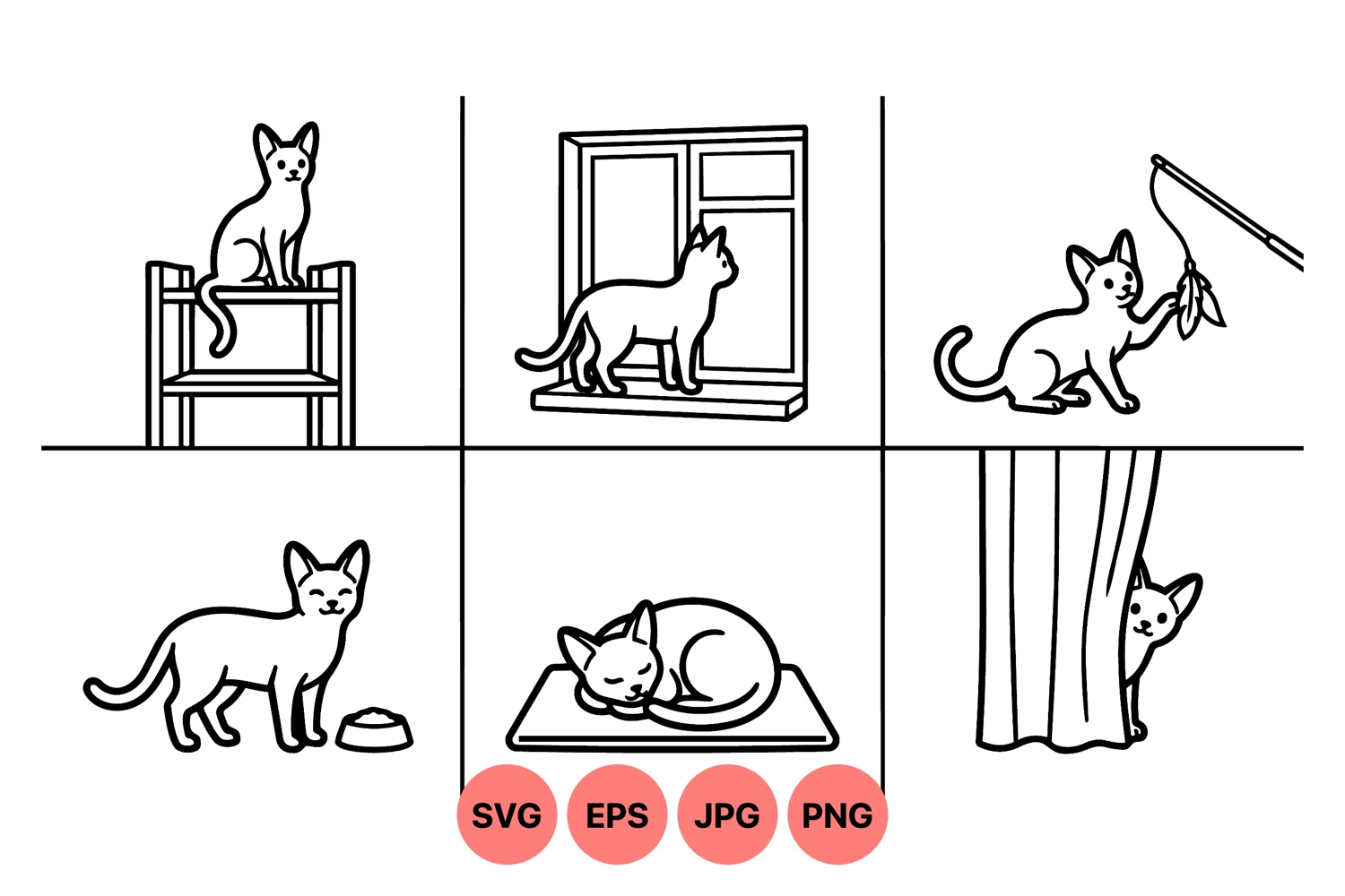 Hand Drawn Cat Cute Cat Vector Domestic Pet Clipart Cat Outline Clipart Sleeping Cat Graphic Kitten Line Art Cat Playing Design Cat Silhouette Drawing Minimalist Cat Illustration Indoor Cat Artwork