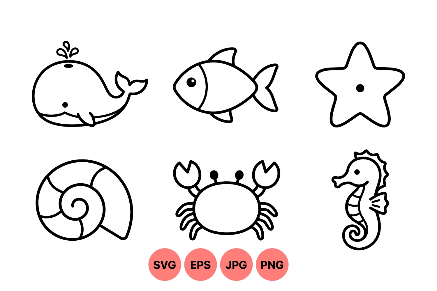 Hand Drawn Svg Black And White Svg Summer Beach Graphics Nautical Digital Art Cute Ocean Animals Underwater Sea Creatures Marine Life Illustration Playful Animal Drawings Kids Craft Design Simple Animal Clipart