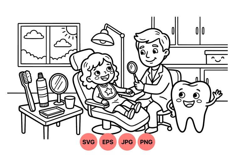 Line Art Dentist Visit Illustration For Kids Health example image 1
