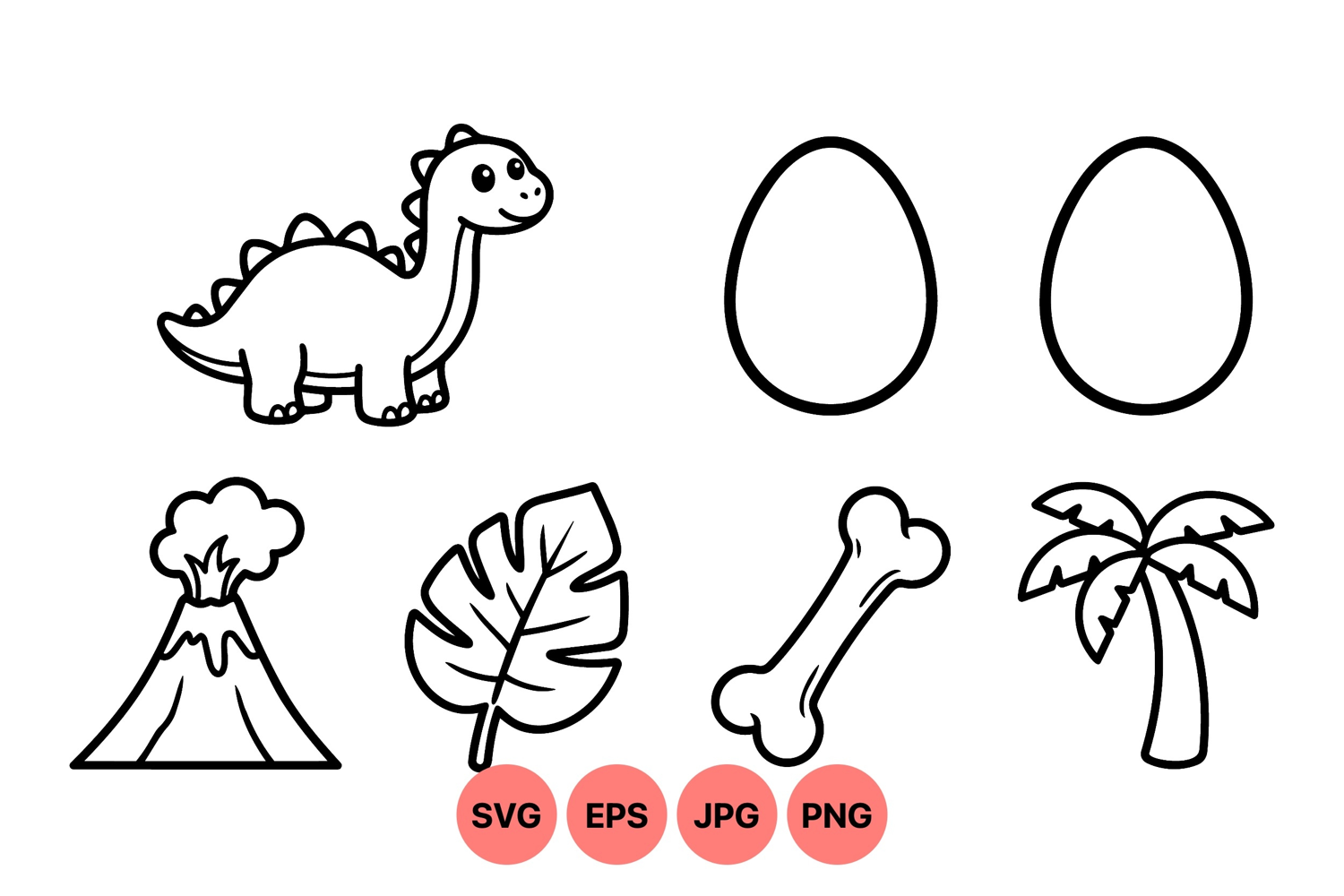Cute Kids Clipart Palm Tree Clipart Prehistoric Animal Graphics Dinosaur Bone Illustration Black Outline Vector Dinosaur Clipart Design Jurassic Dinosaur Art Volcano Eruption Illustration Dinosaur Egg Drawing Tropical Leaf Graphic