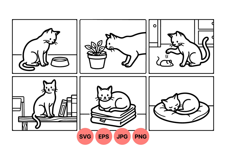 Cute Cat Daily Life Vector Illustrations For Crafts example image 1