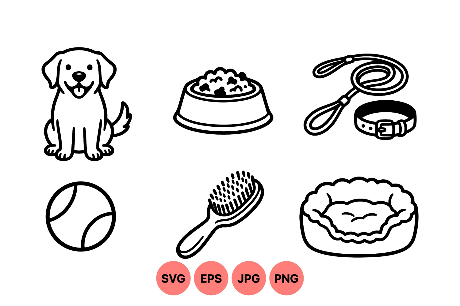 Line Art Animals Cute Animal Icons Pet Accessory Clipart Dog Leash Drawing Animal Outline Graphic Dog Grooming Design Pet Feeding Illustration Dog Care Icon Dog Toy Artwork Pet Collar Vector