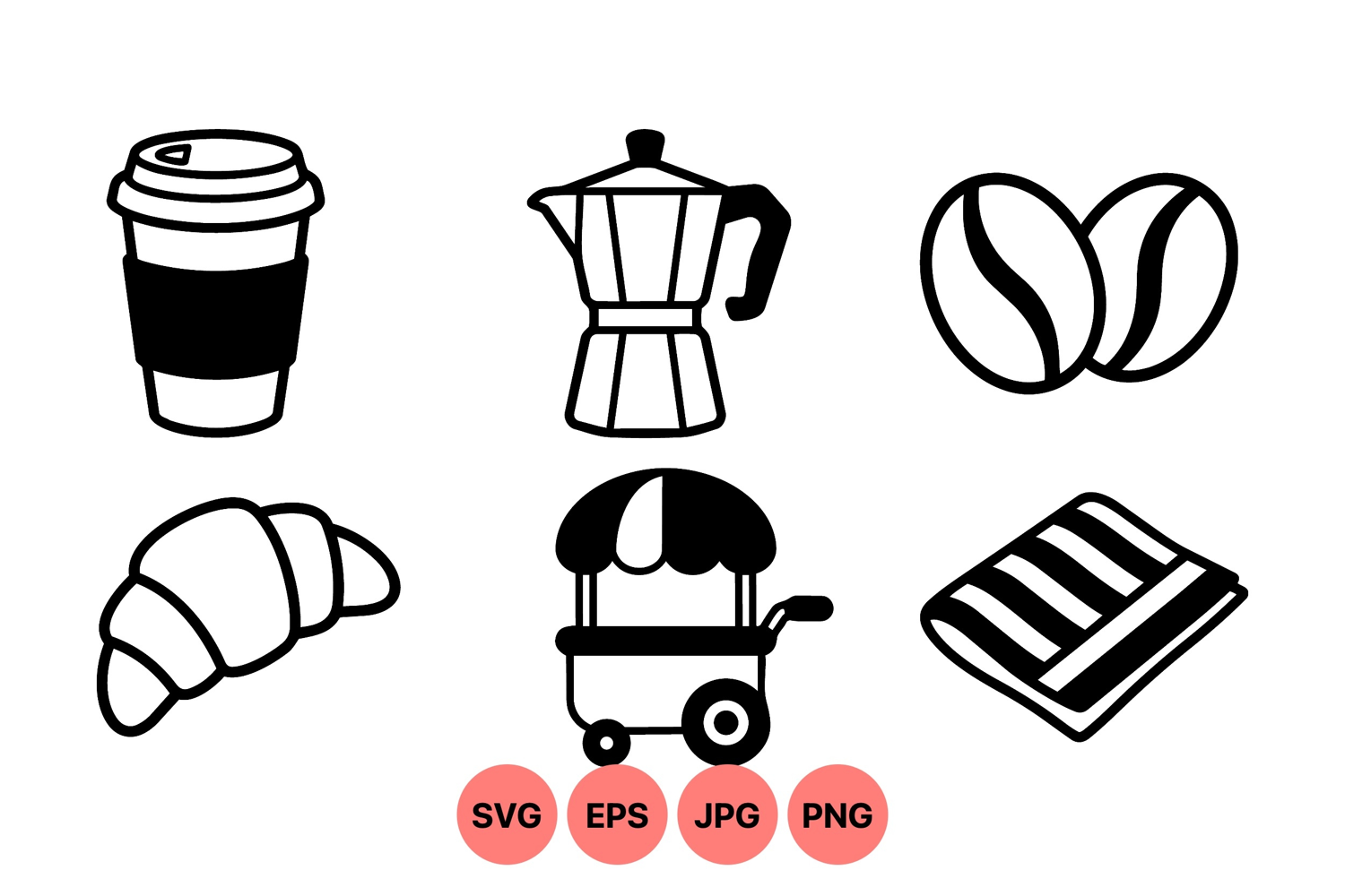 Minimalist Line Art Coffee Shop Illustration Coffee Cup Graphic Black White Icons Coffee Beans Illustration Bakery Icon Design Espresso Maker Icon Croissant Drawing Clipart Street Vendor Cart Morning Breakfast Graphic