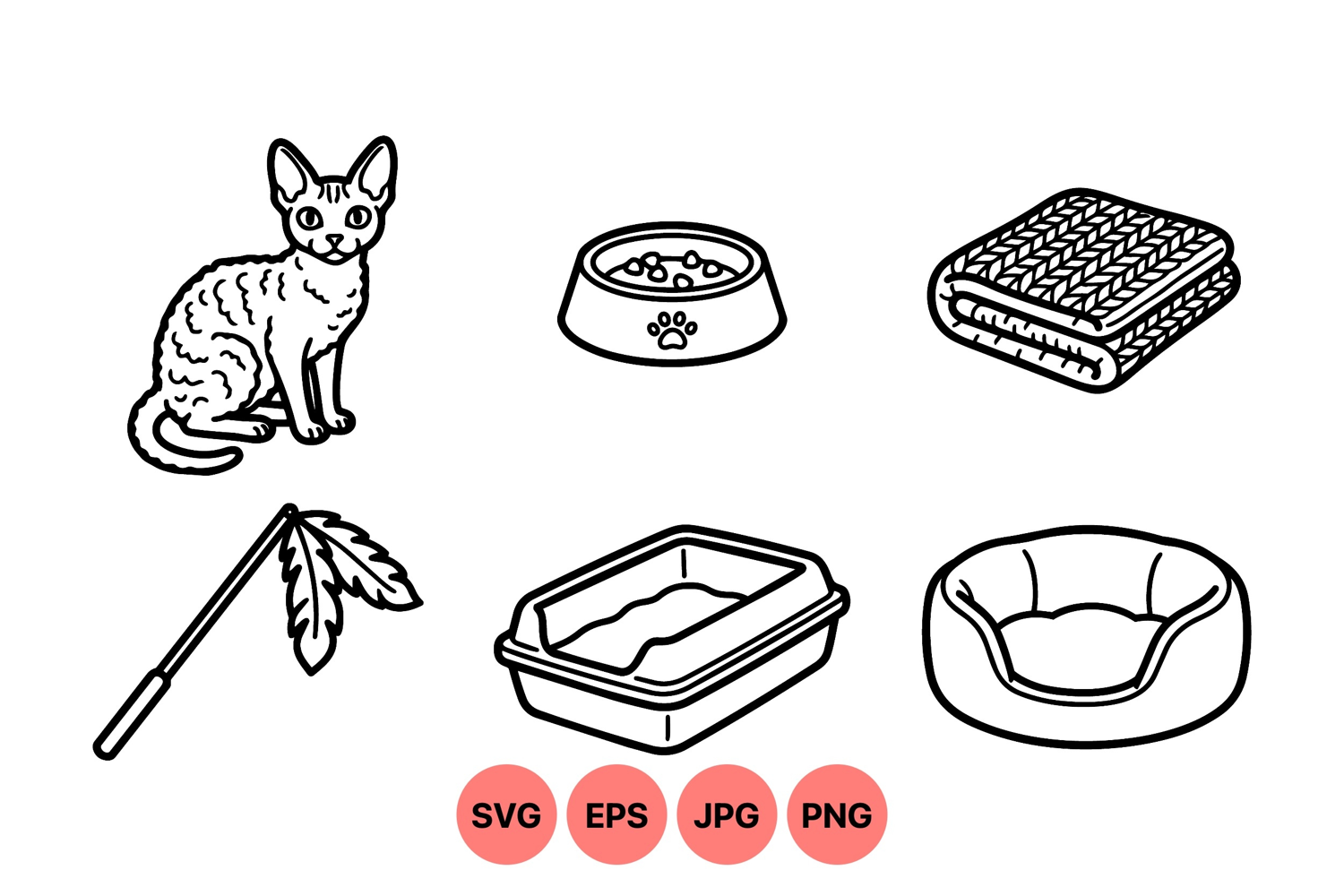 Hand Drawn Cat Simple Cat Clipart Pet Accessories Clipart Cute Pet Graphics Cat Care Illustration Cat Feeding Design Cat Toy Graphic Litter Box Drawing Cat Bed Artwork Line Art Feline