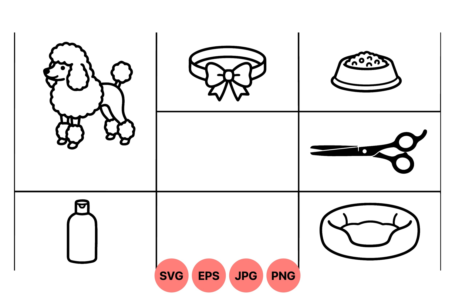 Pet Care Clipart Dog Grooming Icons Animal Care Graphics Dog Collar Illustration Pet Accessory Design Dog Food Graphic Dog Bed Drawing Poodle Vector Art Grooming Scissors Icon Pet Shampoo Bottle