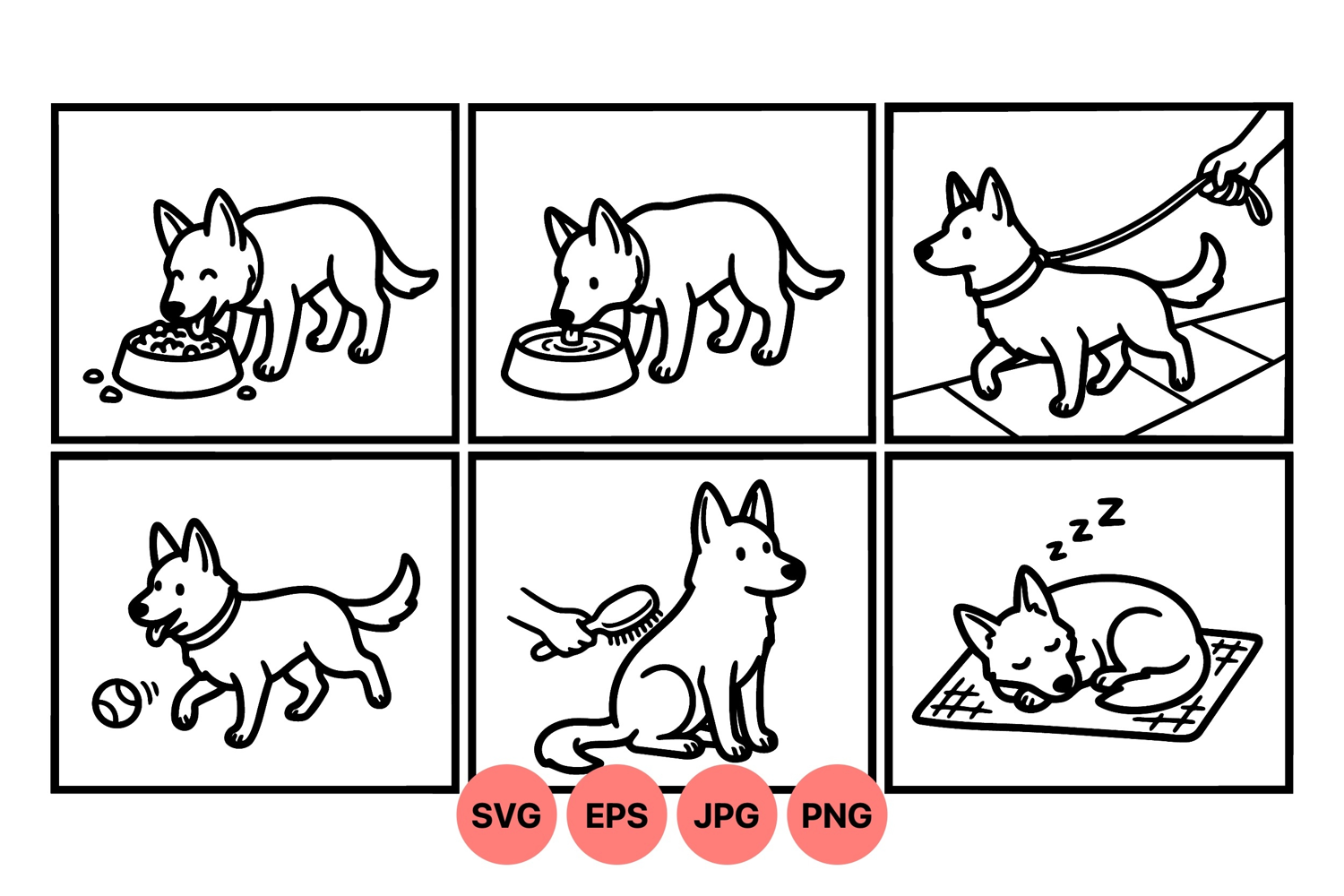 Vector Dog Clipart Pet Care Graphics Pet Grooming Clipart Dog Care Illustration Dog Walking Design Puppy Daily Routine Line Art Puppy Cute Puppy Eating Sleeping Puppy Art Playful Dog Drawing