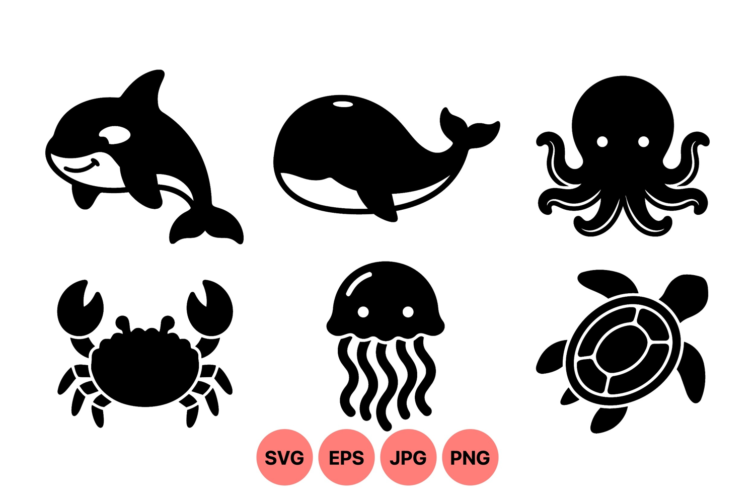 Cute Sea Animals Ocean Animal Clipart Sea Creature Design Underwater Animal Art Marine Life Graphics Minimal Silhouette Art Black Animal Vector Vector Ocean Icons Simple Wildlife Graphics Ocean Wildlife Design