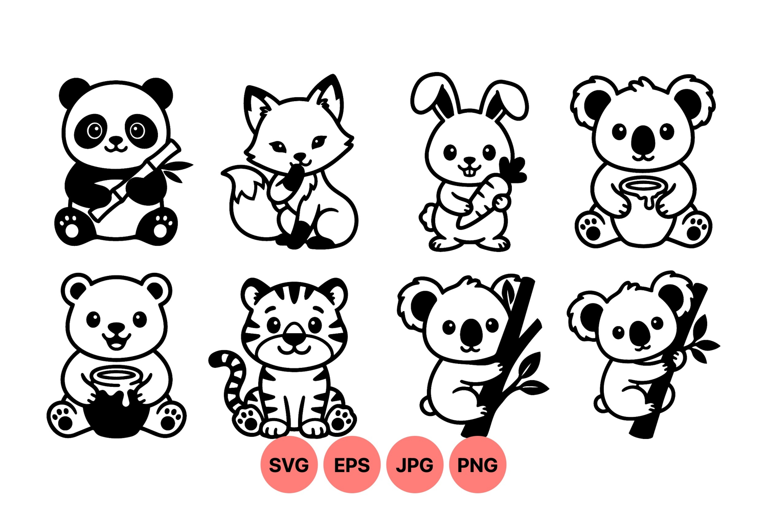 Cute Animal Clipart Black And White Animals Cartoon Animal Design Kids Animal Artwork Vector Animal Graphics Wildlife Digital Art Animal Svg Illustrations Playful Animal Characters Animal Drawing Graphics Friendly Animal Icons