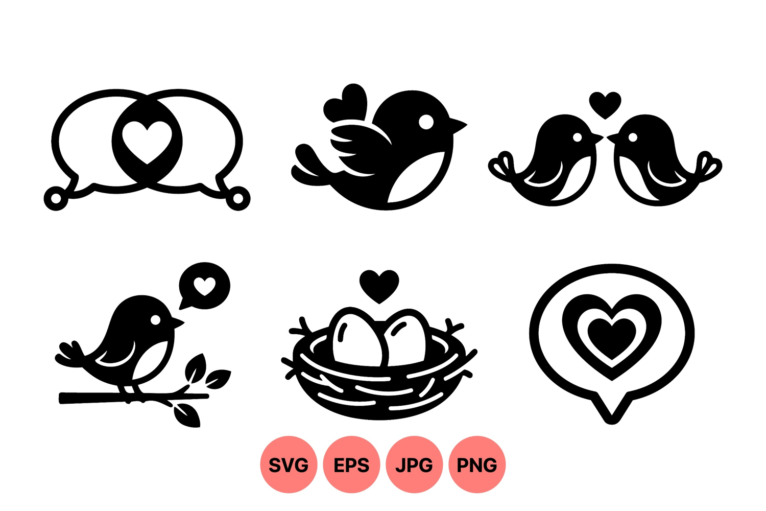 Cute Bird Illustrations Minimalist Vector Icons Heart Speech Bubbles Romantic Vector Design Love Birds Icons Valentines Svg Art Bird Nest Graphics Wildlife Svg Clipart Loving Bird Pair Branch And Leaves
