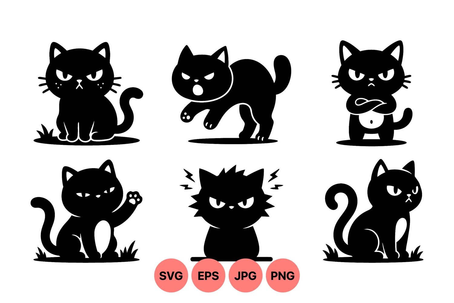 Angry Black Cat Silhouette Vector Clipart Design example image 1