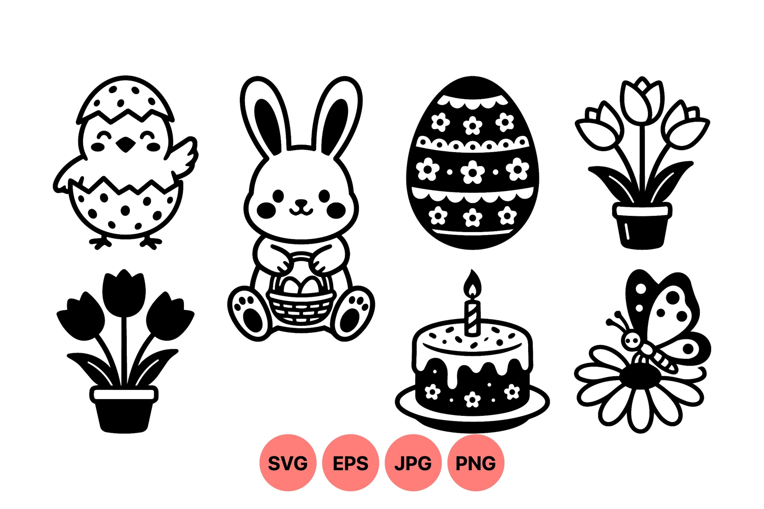 Easter Bunny Clipart Black And White Svg Cute Easter Egg Spring Flower Design Butterfly On Flower Birthday Cake Illustration Kids Craft Image Seasonal Holiday Design Flower Pot Graphic Vector Animal Svg