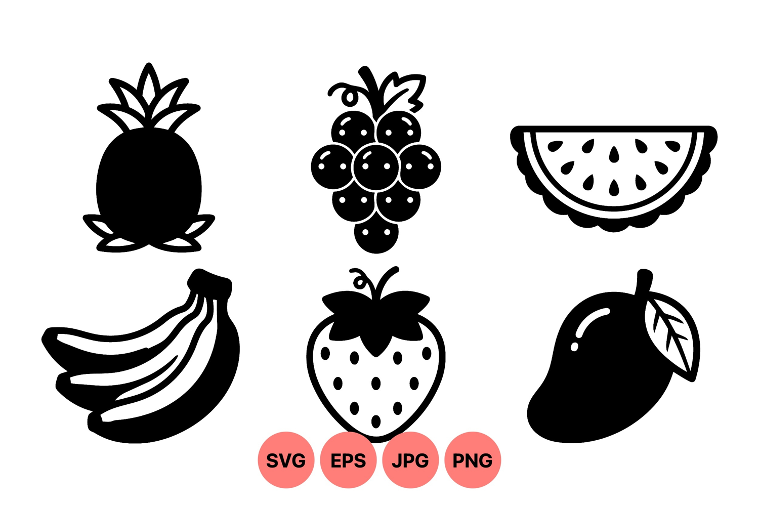 Summer Fruit Svg Healthy Food Graphics Fresh Fruit Illustration Organic Fruit Clipart Tropical Fruit Icons Fruit Silhouette Design Black Fruit Vector Minimal Fruit Design Ripe Tropical Fruits Simple Fruit Graphics