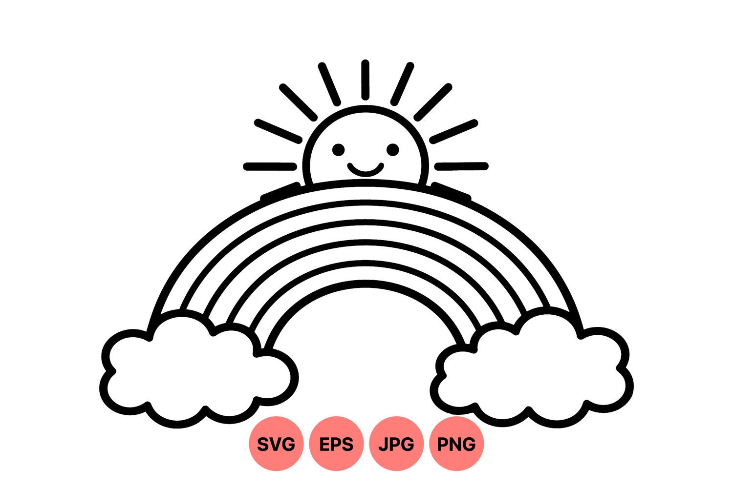 Rainbow And Clouds Black Line Art Cute Kids Illustration Smiling Sun Clipart Child Friendly Art Happy Weather Graphic Playful Children Design Simple Vector Drawing Monochrome Svg File Cheerful Sky Element
