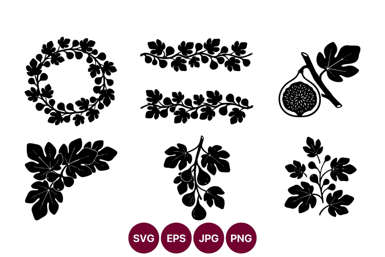 Flat Design Line Art Leaf Silhouettes Vector Silhouettes Botanical Leaves Decorative Leaves Fig Leaf Garden Silhouettes Plant Motifs Monochrome Botanicals