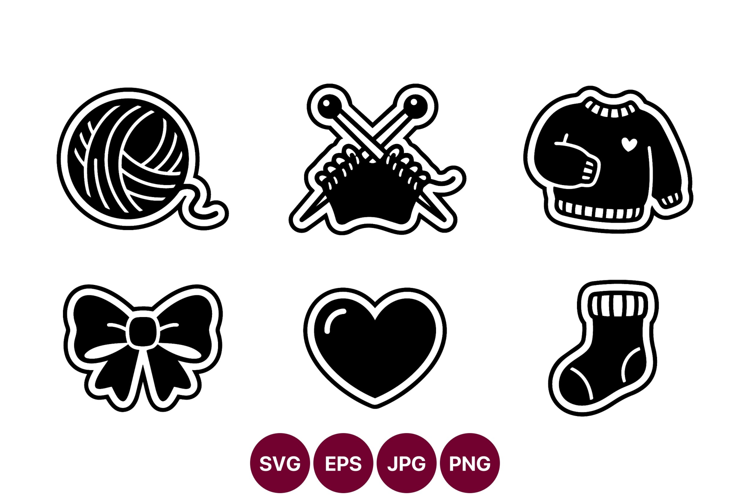 Line Art Vector Icons Heart Symbol Sweater Icon Yarn Ball Sock Icon Knitting Kit Bow Motif