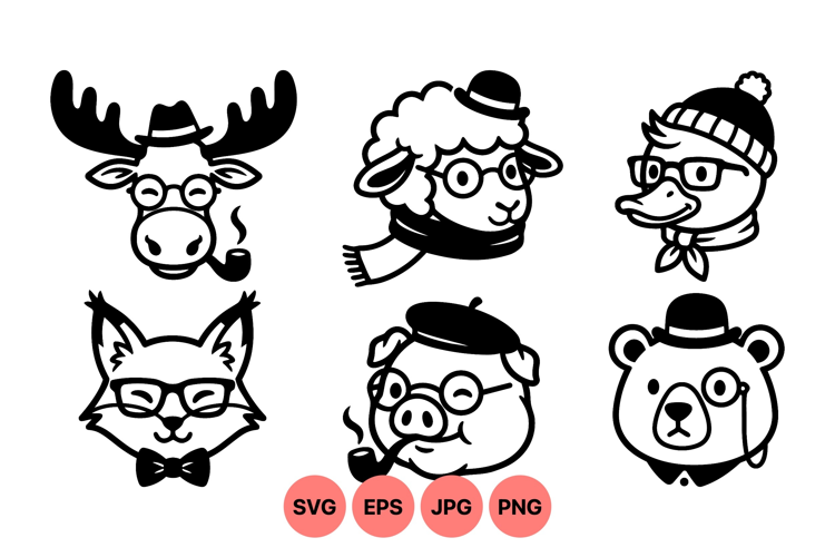 Black And White Svg Cute Animal Illustration Animal Face Clipart Funny Animal Clipart Animal Character Design Vector Animal Art Hipster Style Graphics Animal Cartoon Graphics Hipster Animal Vector Animal Portrait Vector