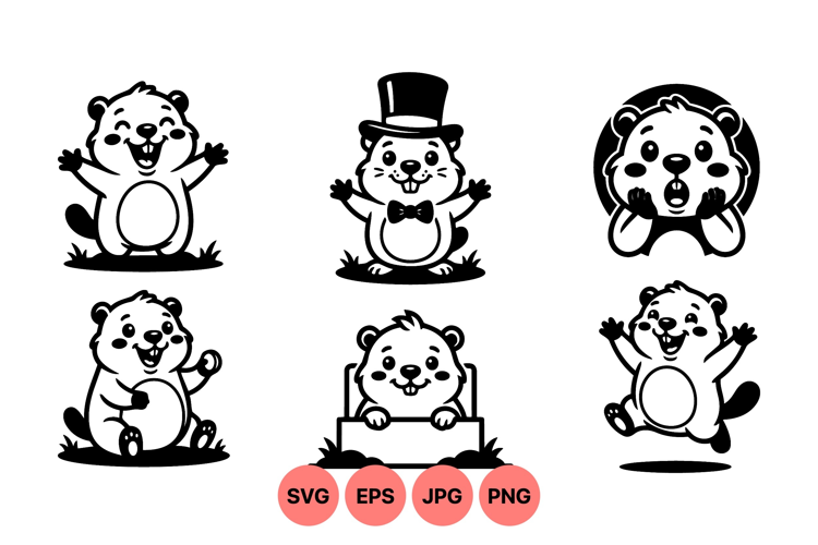 Cute Animal Vector Black And White Vector Animal Character Design Holiday Animal Art Funny Cartoon Clipart Vector Animal Graphics Woodland Creature Illustration Cartoon Groundhog Character Groundhog Mascot Illustration Playful Groundhog Drawing