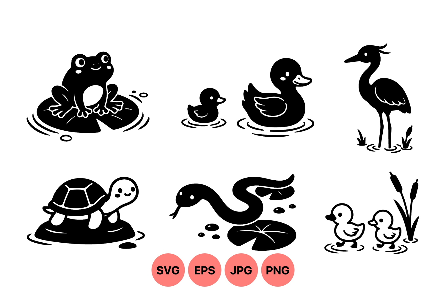 Similar Design Products to Cute Vector Pond Animal Silhouettes For Crafts