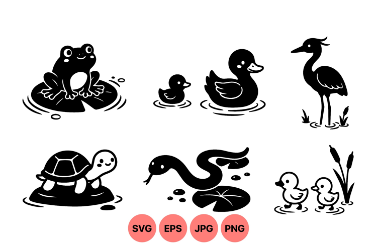 Cute Vector Pond Animal Silhouettes For Crafts example image 1
