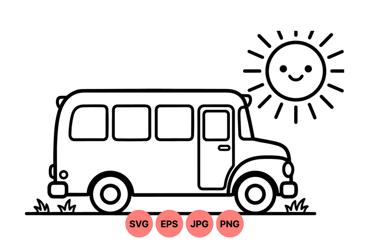 Cute School Bus Line Art Svg With Smiling Sun