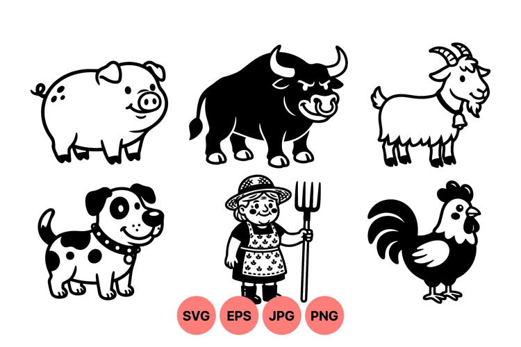 Hand Drawn Farm Animal Clipart SVG example image 1