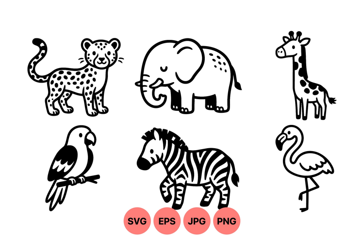 Cute Animal Clipart Black And White Animals Wild Animal Illustrations Safari Animal Illustrations Vector Animal Graphics Children Animal Art Playful Animal Drawing Animal Cartoon Artwork Jungle Wildlife Design Printable Animal Images