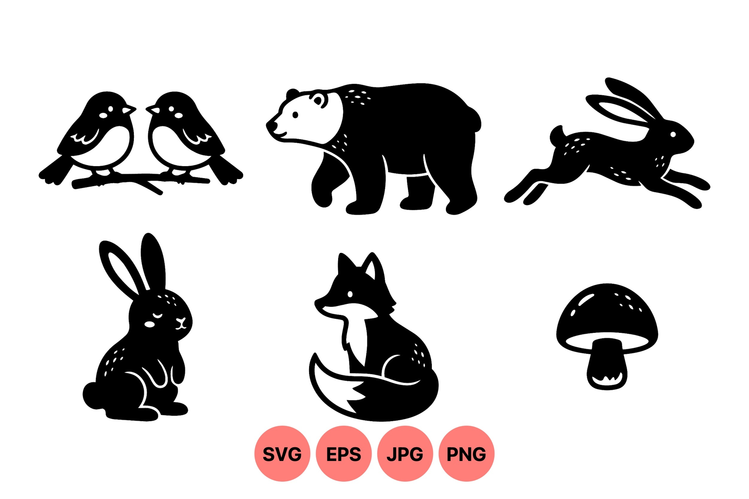 Woodland Animal Clipart Cute Rabbit Illustration Nature Themed Graphics Forest Wildlife Design Silhouette Animal Graphics Fox Vector Artwork Bear Animal Drawing Bird Silhouette Graphic Black Mushroom Icon Wildlife Svg Designs