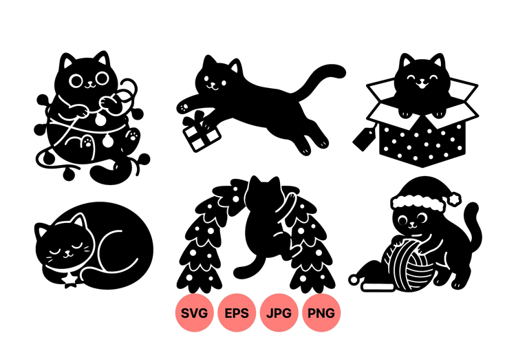 Playful Cat Holiday SVG Clipart For Crafts example image 1
